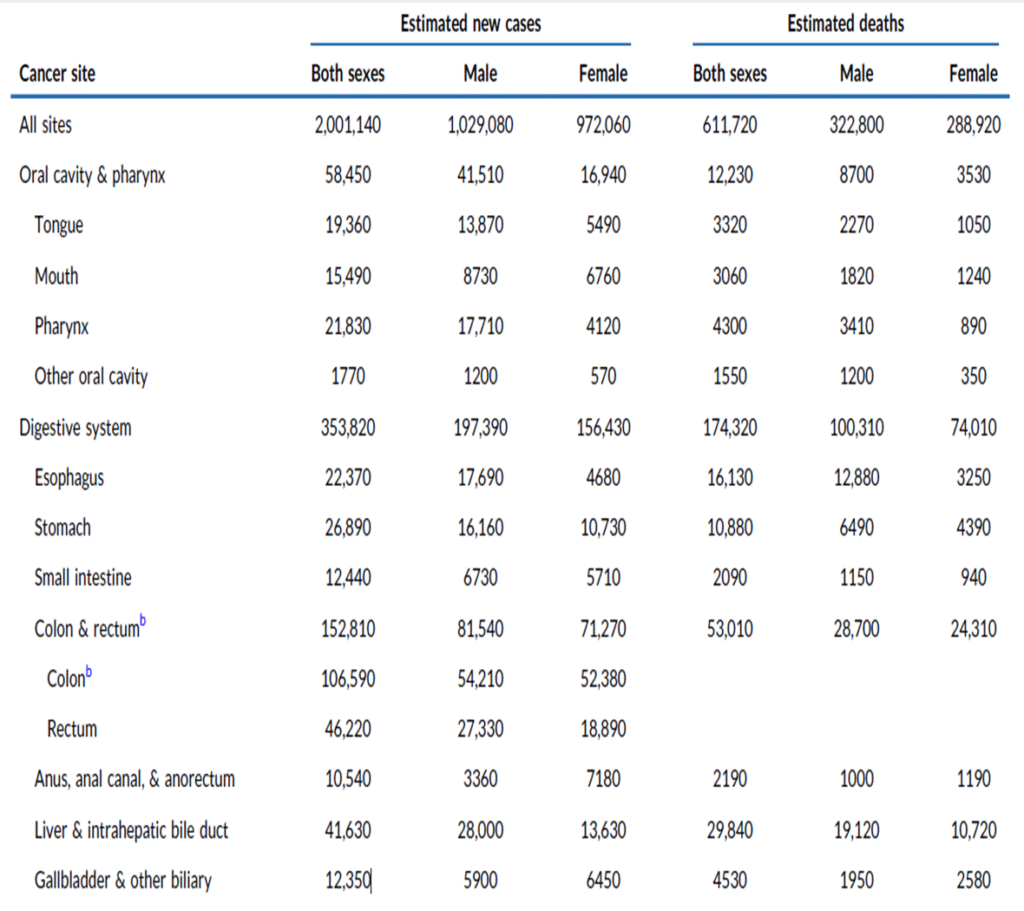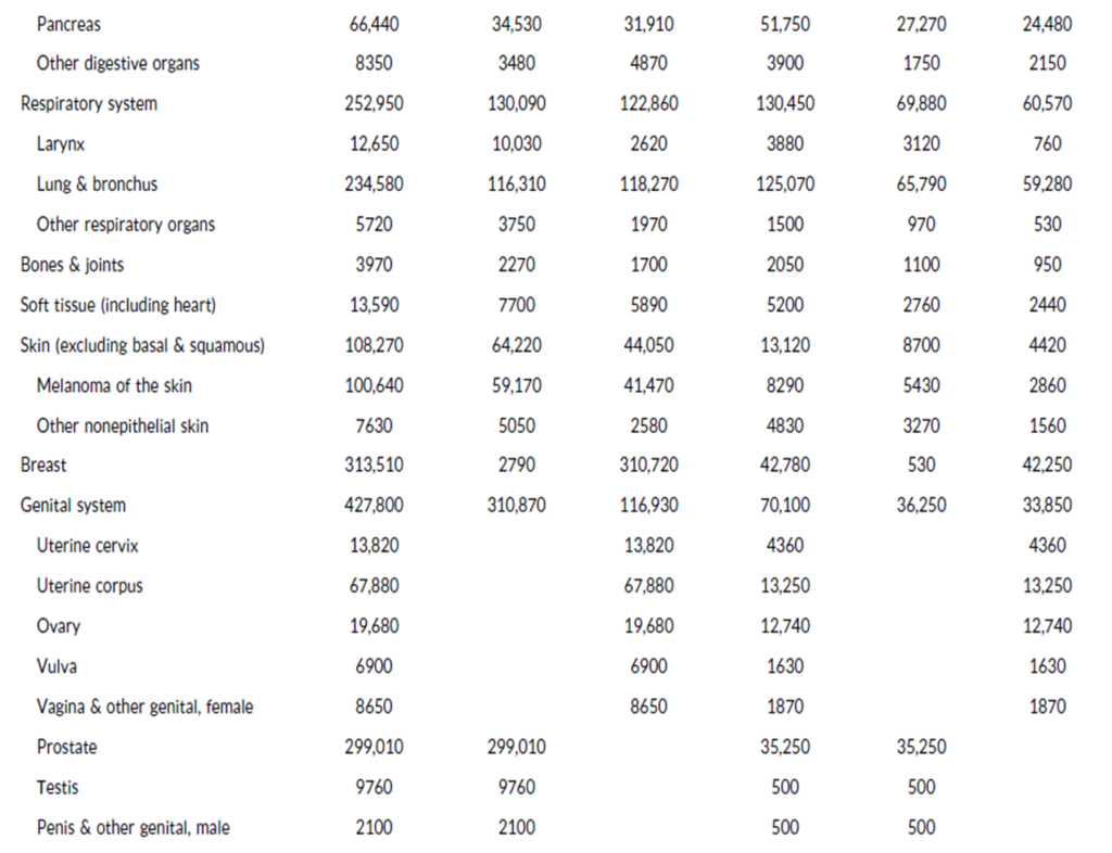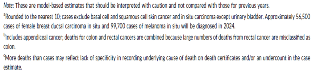 تخمین موارد جدید سرطان و مرگ و میر بر اساس جنسیت، ایالات متحده، 2024 :