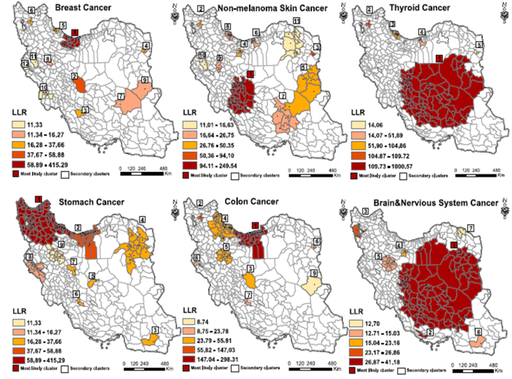 بروز، مرگ و میر و شیوع بر اساس محل سرطان در ایران :