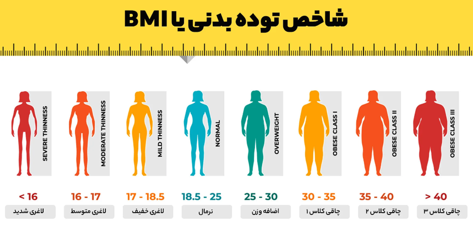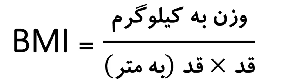 شاخص توده بدنی (BMI) به عنوان یک ابزار غربالگری برای اضافه وزن و چاقی استفاده می شود. فرمول محاسبه BMI به صورت زیر میباشد.